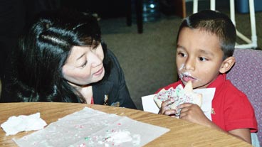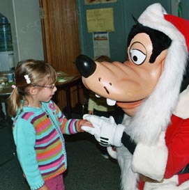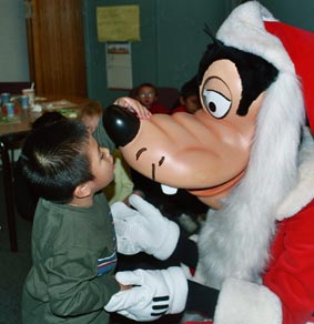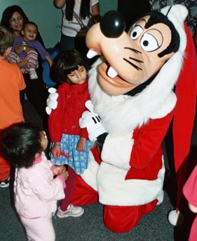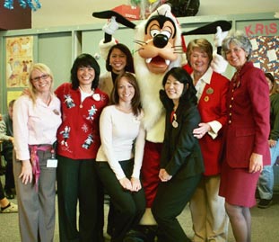 Staff from the Sales Division at Disneyland hosted a holiday cookie decorating party for the children. Volunteers brought all the goodies for the children and helped them with their masterpieces. The children were delighted with the surprise visit from Santa Goofy. They were able to feel his fur jacket, his beard and his big nose. We appreciate all the support and caring our friends at Disneyland show to our children.