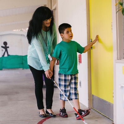 ____________ Children ages three to eighteen are paired with a licensed Orientation & Mobility Specialist to learn how to strategically assess their environment using senses other than sight. Adventures through local neighborhoods and a special Mobility Training Center teach children with visual impairments how to confidently navigate a world full of variety and change.